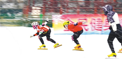 喜爱冰雪运动的青少年在北京的滑冰场参与速滑训练。经济日报记者 高兴贵摄
