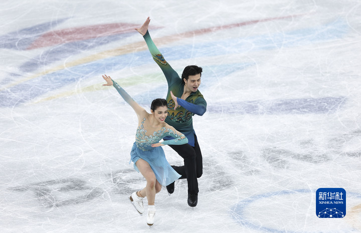 2月14日,中国选手王诗玥(左)和柳鑫宇在北京2022年冬奥会花样滑冰冰上舞蹈自由舞比赛中。新华社记者曹灿摄