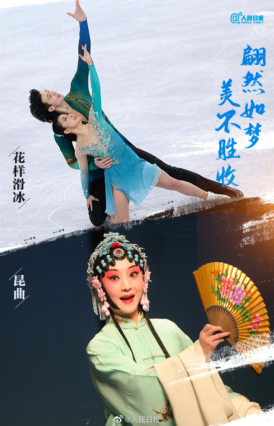 花滑与昆曲,同样的梦幻美丽;自由式滑雪与京剧空翻,同样的扣人心弦;钢架雪车与赛龙舟,同样的风驰电掣…当现代的冬奥项目遇上传统非遗,会擦出怎样的火花?北京冬奥会明天闭幕,谢谢冬奥健儿们带来的激励与感动,继续为他们加油!