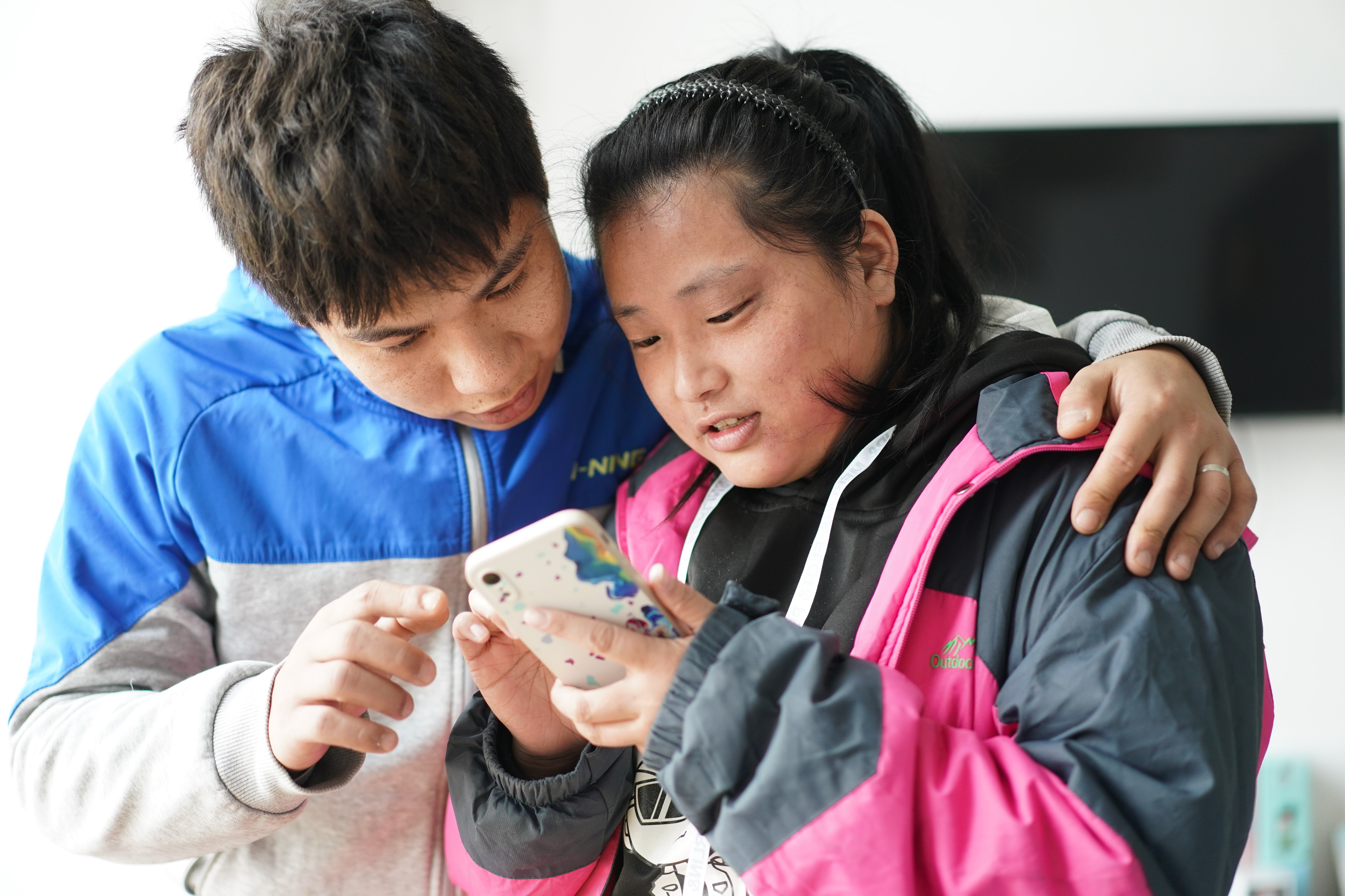 新华社照片,苏州(江苏),2022年2月19日 推迟婚礼,新婚夫妇苏州“疫”线齐出力 2月19日,王文彬夫妇收到亲友的祝福信息。这一天原本是他们举办婚礼的日子。 苏州“90后”新婚夫妇王文彬、张煜林原定2月19日举行婚礼,面对疫情突袭,他们取消婚礼,携手当起志愿者,在防控一线演绎“别样浪漫”。 王文彬是一名伤残退役军人,也是苏州市姑苏区沧浪街道的民兵。他2020年在当防疫志愿者时与张煜林相识相恋。2月14日晚,还在休婚假的他得知社区招募志愿者,立刻动了报名的念头。“我们一起去吧。”妻子张煜林全力支持。在核酸检测点,他维护秩序、发放检测凭证,她协助医务人员进行核酸采样。 “和许多抗疫英雄比起来,我们做的事情微不足道,但能以微薄的力量,为大家的健康护航,也是一种幸福。”小两口期待疫情早日散去,办婚礼,度蜜月,享受岁月静好的生活。 新华社记者 季春鹏 摄