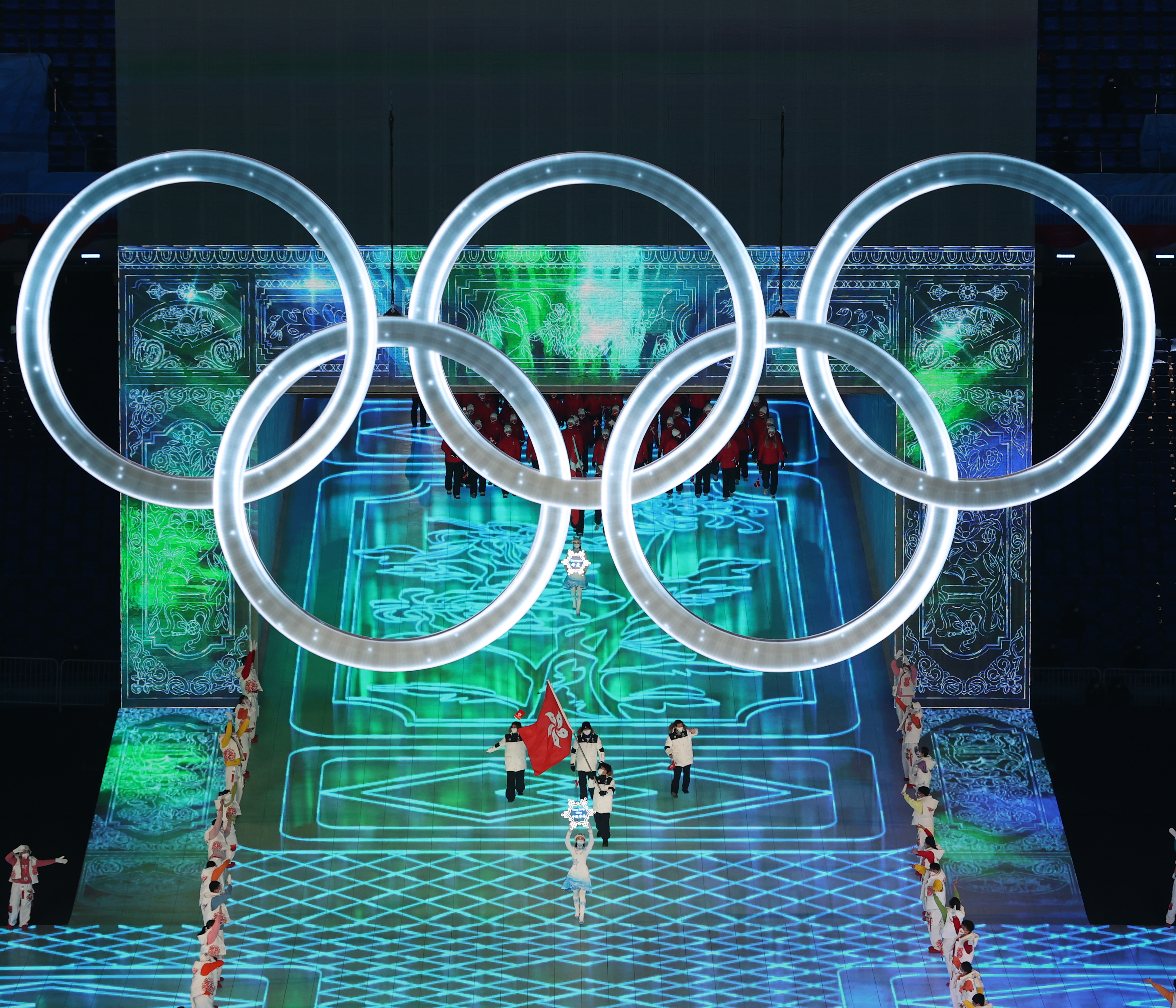 2月4日晚,中国香港代表团在北京冬奥会开幕式上入场。新华社记者杨磊摄