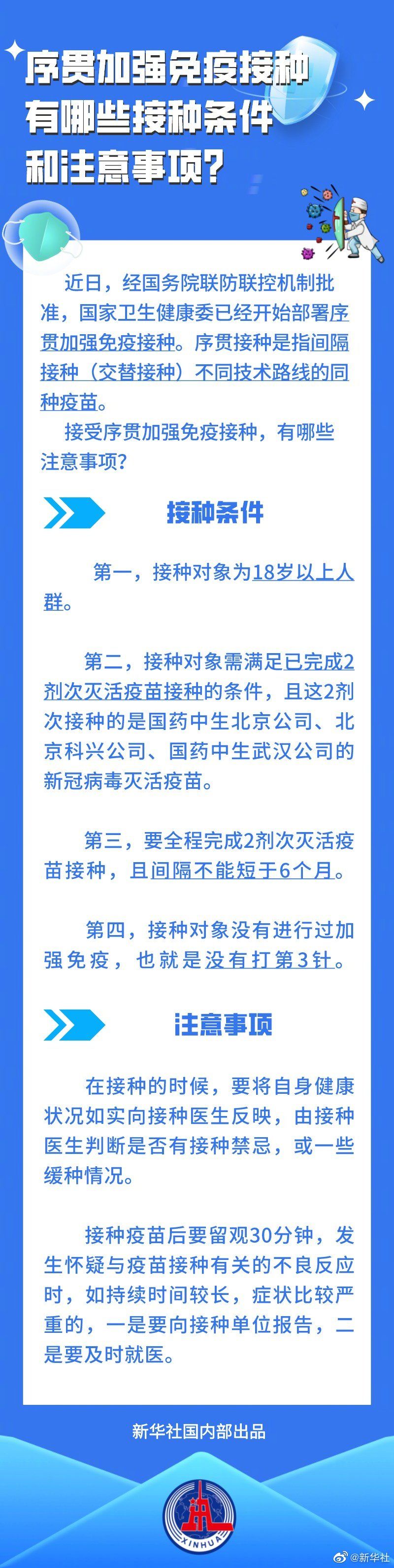 【接种不同技术路线新冠疫苗注意事项】近日,经国务院联防联控机制批准,国家卫生健康委已经开始部署序贯加强免疫接种。序贯接种指间隔接种(交替接种)不同技术路线的同种疫苗。哪些人群可以接受序贯加强免疫接种?序贯加强免疫接种有什么特别注意事项?戳图,看来自国务院联防联控机制的权威解答。(记者顾天成、徐鹏航)