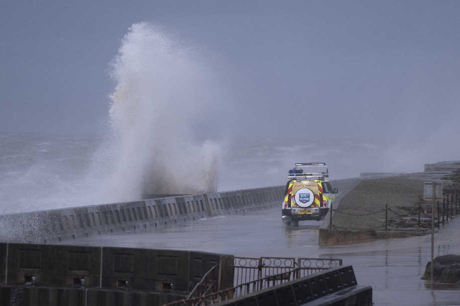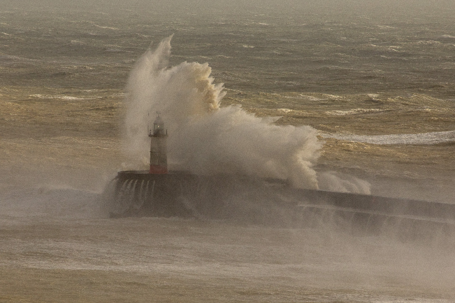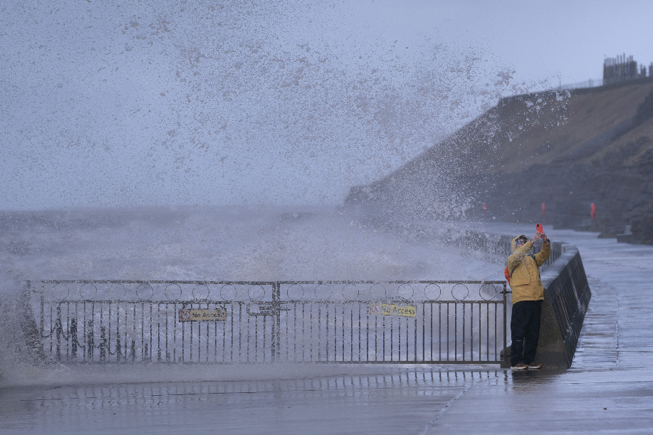 ↑2月18日,在英国纽黑文,巨浪拍打堤岸。新华社发(蒂姆·爱尔兰摄)
