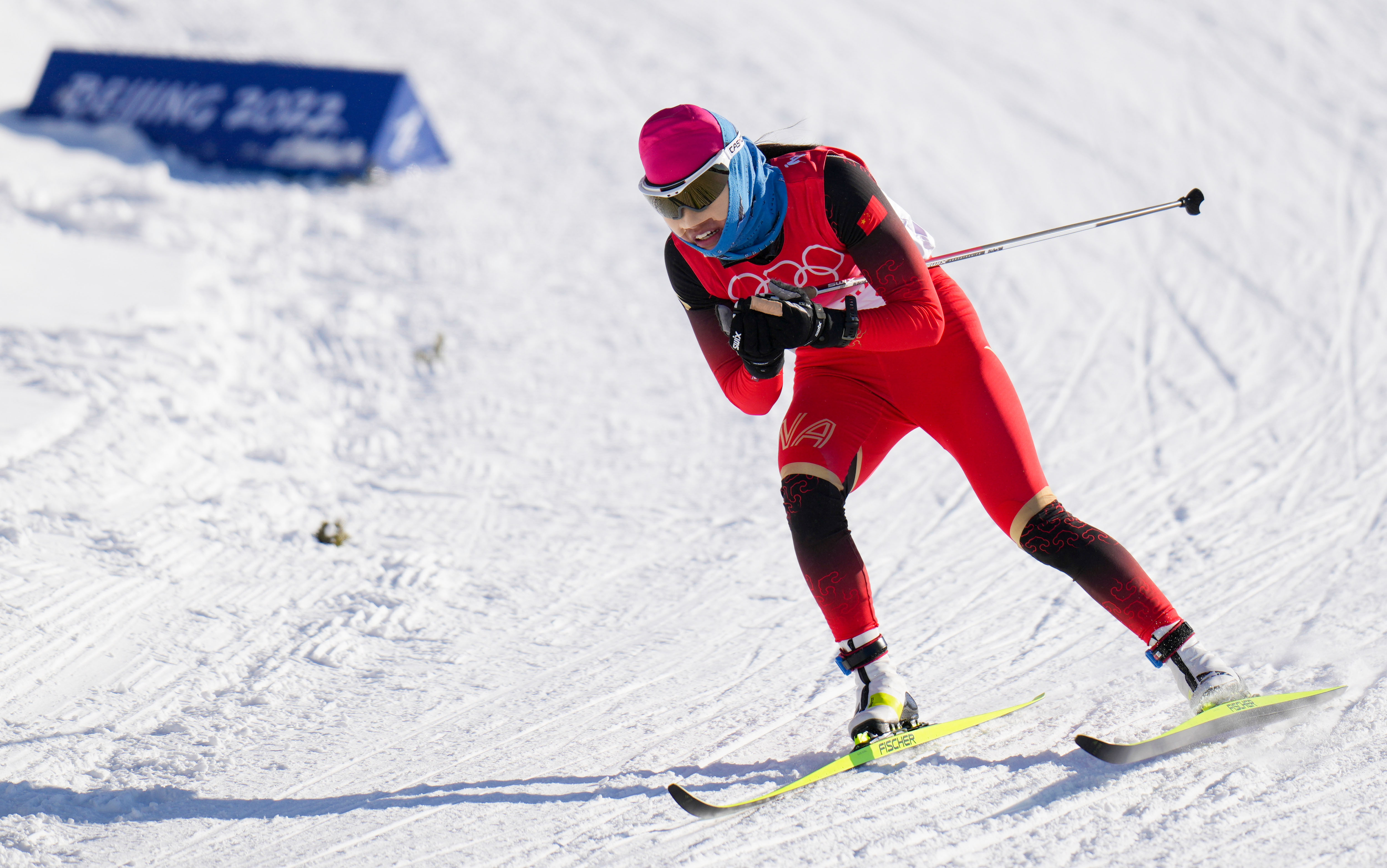 2月16日,中国队选手池春雪在北京冬奥会越野滑雪女子团体短距离(传统技术)比赛中。新华社记者刘潺摄