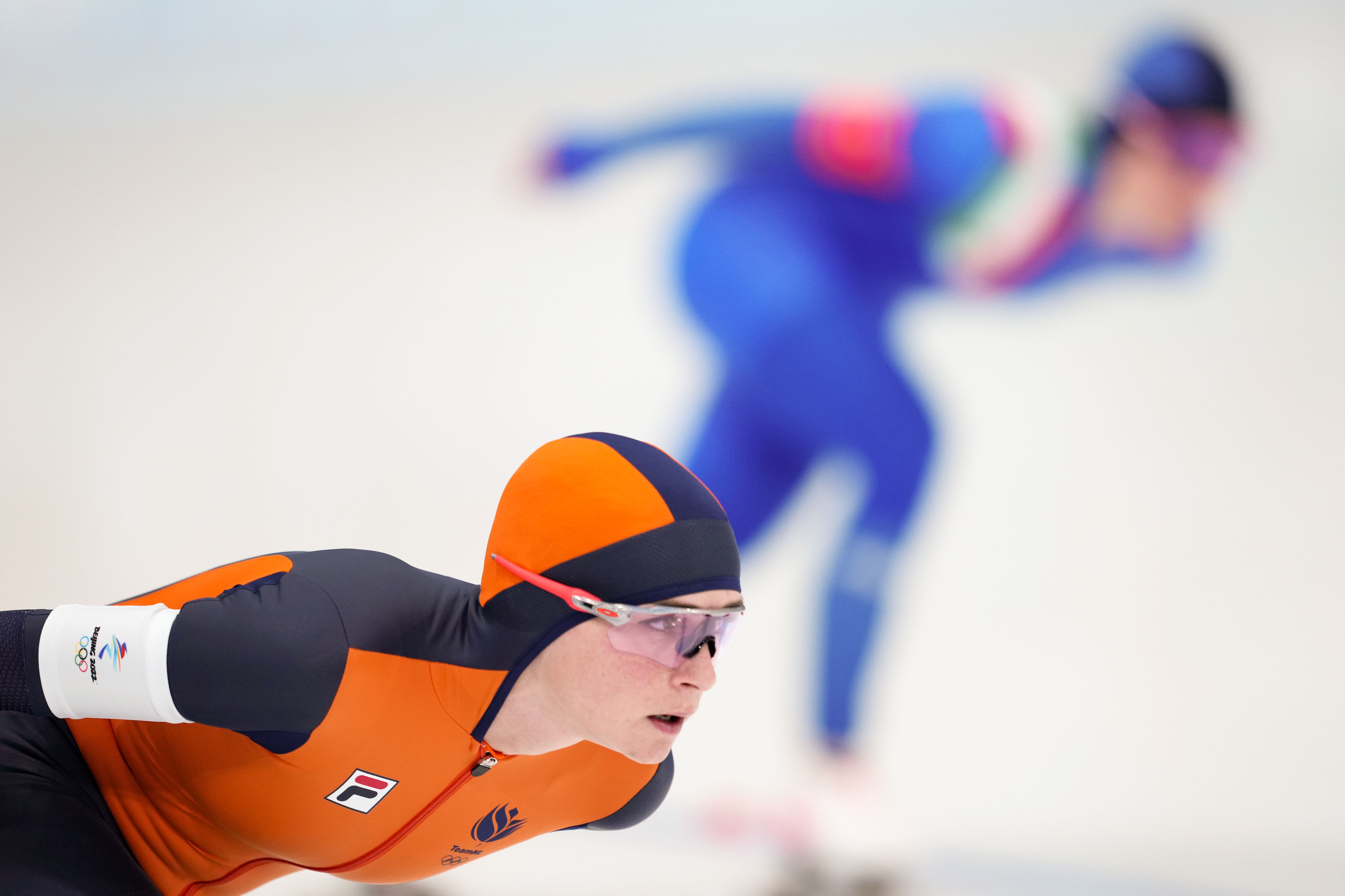 新华社照片,北京,2022年2月19日 (新华全媒头条·图文互动)(12)钟华论:中国携手世界 向着春天出发——写在北京第二十四届冬季奥林匹克运动会闭幕之际 2月10日,荷兰选手伊雷妮·斯豪滕在速度滑冰女子5000米决赛中。 (配本社同题文字稿) 新华社记者 王建威 摄