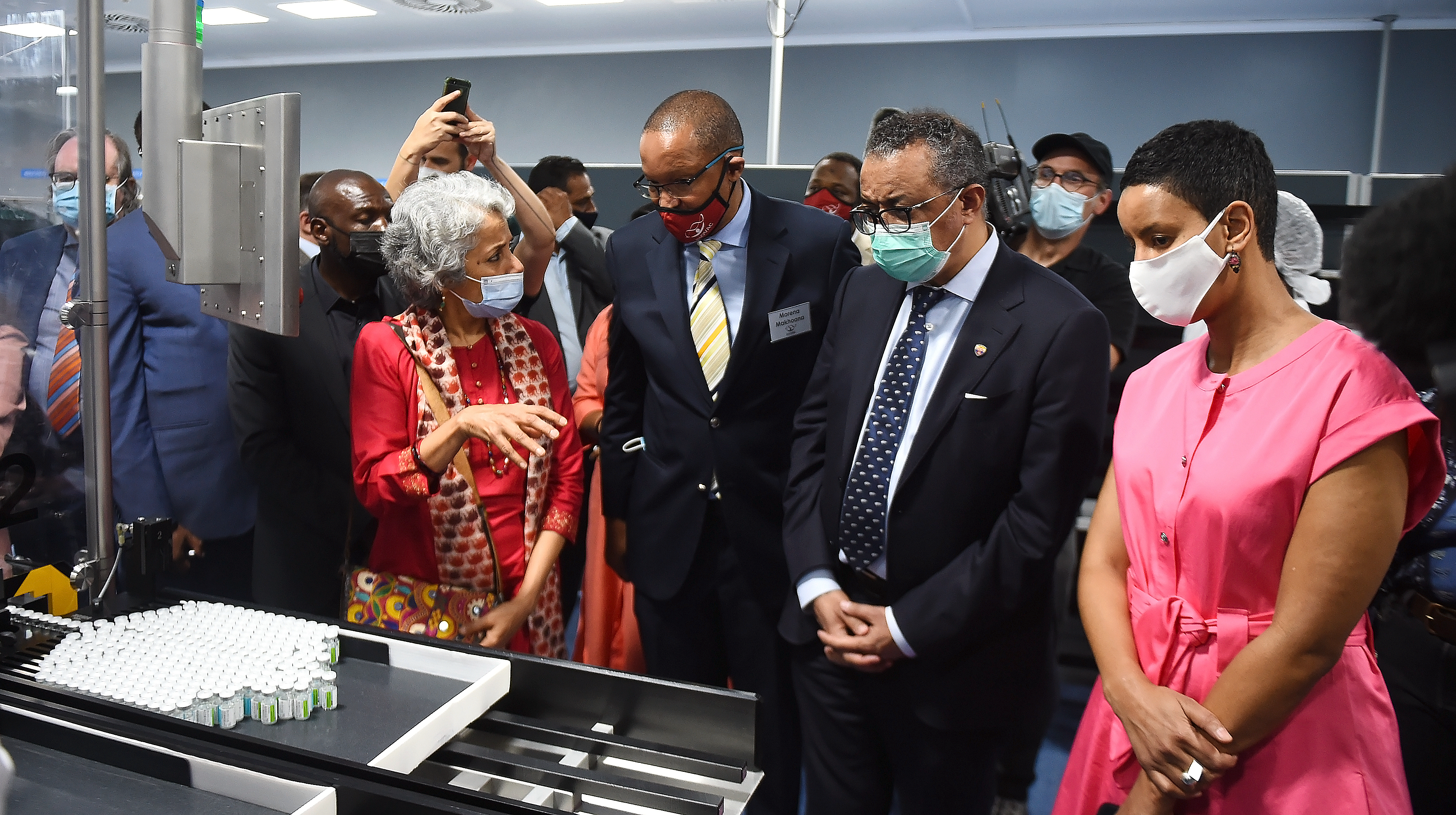 新华社照片,开普敦,2022年2月20日 (国际疫情)(1)世卫宣布6国受援转让新冠疫苗技术 非洲首款mRNA疫苗将临床研究 世界卫生组织总干事谭德塞2月18日宣布,埃及、肯尼亚、尼日利亚、塞内加尔、南非、突尼斯成为“新冠疫苗技术转让中心”的第一批受援国。参与该转让中心项目的南非合作方表示,非洲首款本土研制的mRNA(信使核糖核酸)新冠疫苗将很快开始临床研究。 这是2月12日,世界卫生组织总干事谭德塞(前右二)在南非开普敦访问“新冠疫苗技术转让中心”合作方实验室。 新华社发(哈比索·姆卡贝拉摄)