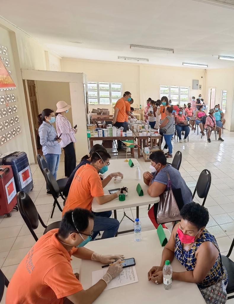 2月6日,医疗队成员前往圭亚那西南边境城市莱瑟姆,为当地华侨华人义诊。这里距首都乔治敦约550公里,生活着数百名华人。当地医疗资源比较匮乏,新冠疫情下,就医难雪上加霜。