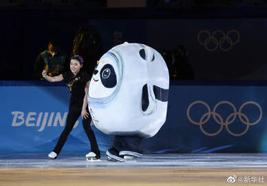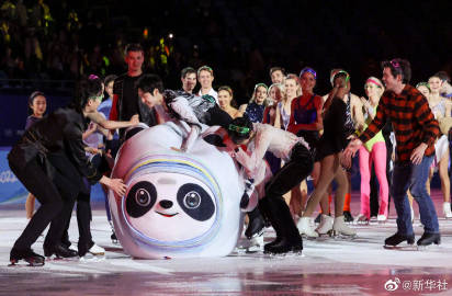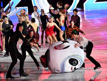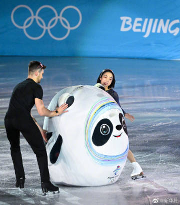 #冰墩墩滑冰#【呆萌!#冰墩墩与花滑名将在一起#】2月20日,北京2022年冬奥会花样滑冰表演滑在首都体育馆举行。“冰墩墩”走上滑冰场,与花滑名将们互动,一起滑冰,一起欢乐……