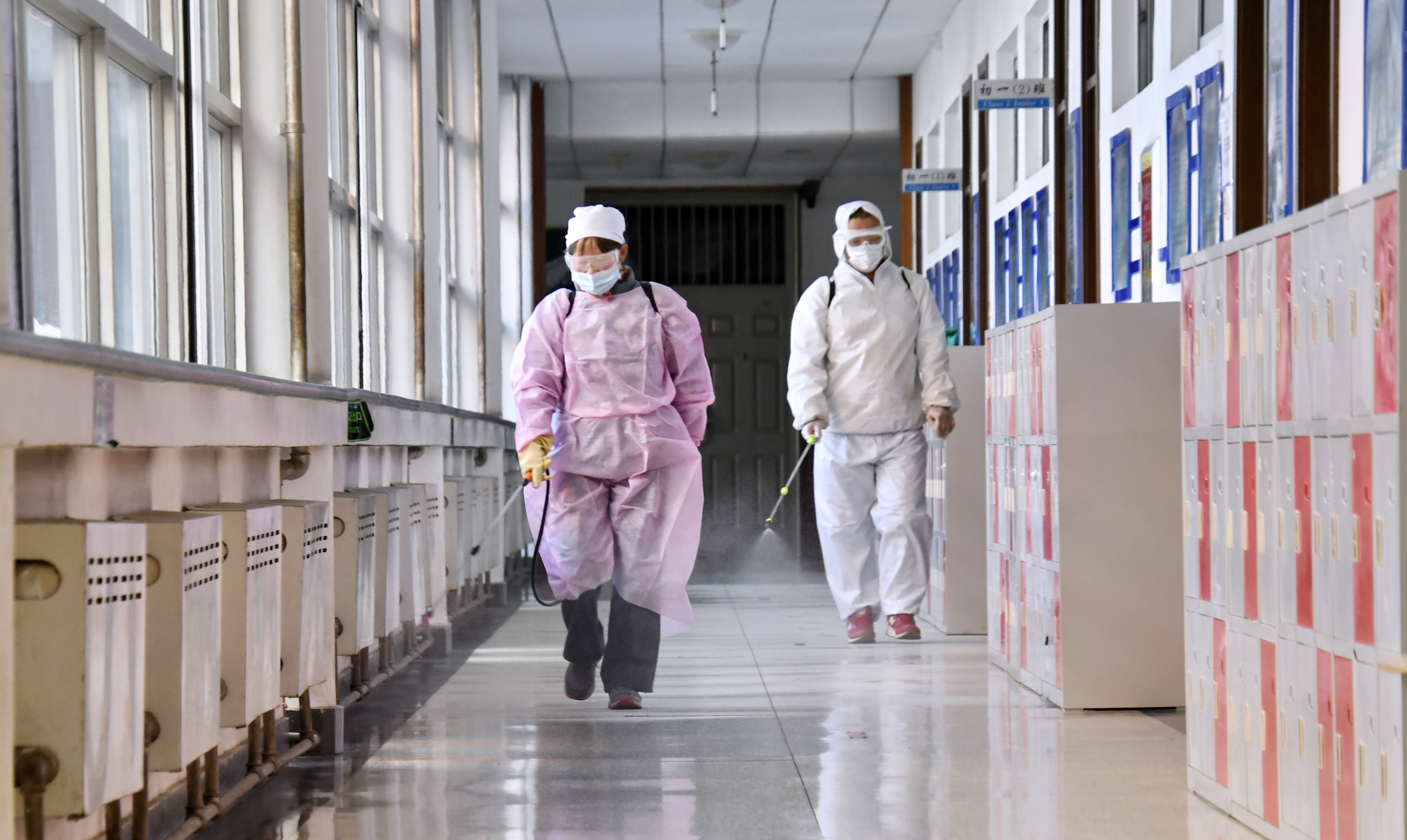 新华社照片,北京,2022年2月20日 北京:做好防疫迎接开学 2月20日,在北京市航天中学,防疫人员对教学楼进行消毒。 近日,北京市中小学校陆续开展防疫措施隐患排查和教学环境消杀工作,迎接即将到来的新学期。记者在北京市丰台区了解到,为迎接开学,丰台区所辖中小学校均制定疫情突发情况应急预案,配备了防疫消杀、测温、隔离、疏散、通讯等设备设施,配备专职防疫人员,确保安全有序开学。 新华社记者 李欣 摄