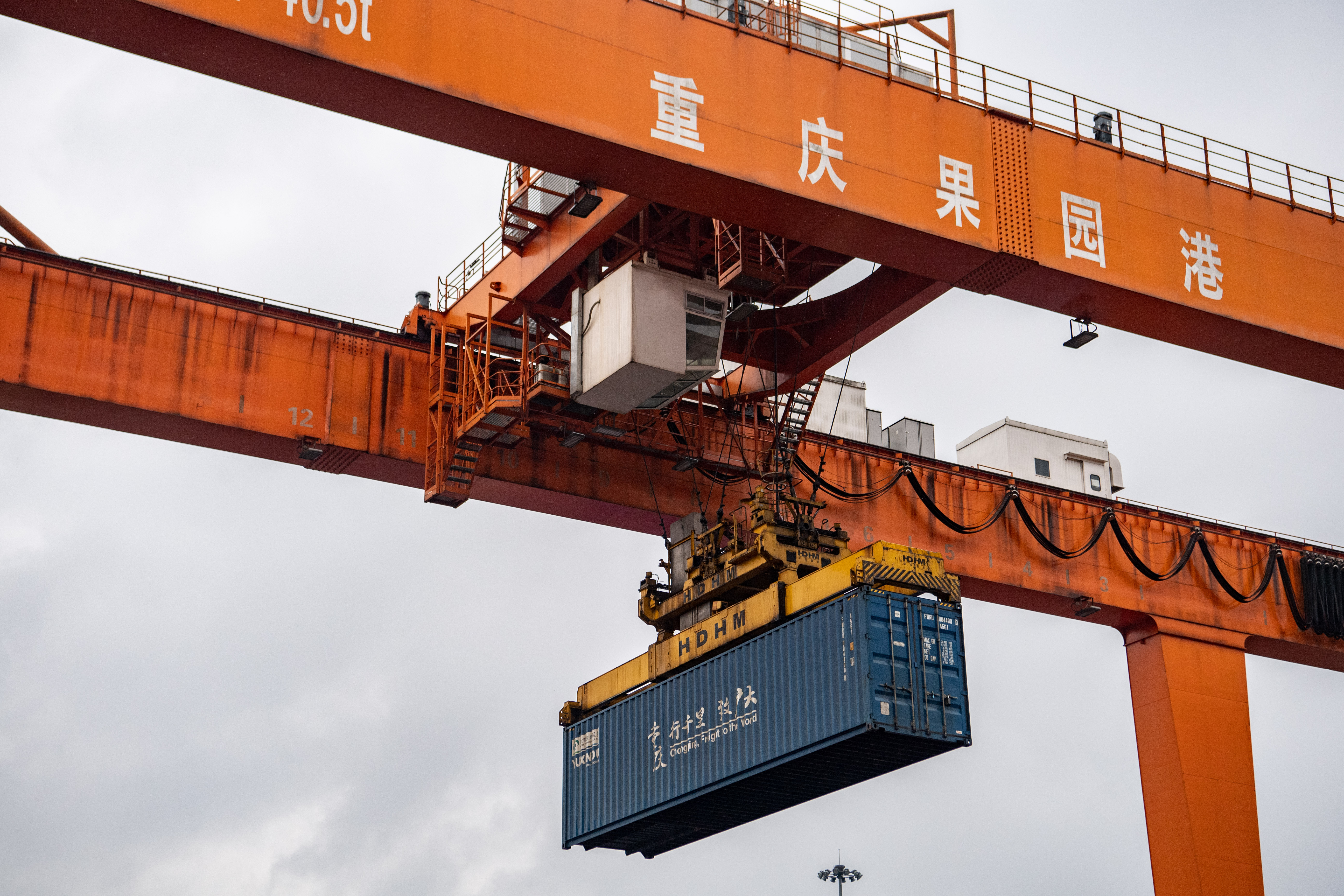 新华社照片,重庆,2022年2月20日 我国精细化工产品通过“中欧班列”出口欧洲 这是2月19日拍摄的重庆果园港装载作业现场。 2月20日,装载1100余吨聚乙烯醇(PVA)等精细化工产品的火车专列通过中欧班列(渝新欧),从重庆果园港启程发往德国杜伊斯堡。本次列车共发运49个集装箱,全部装载中国石化川维化工公司生产的聚乙烯醇等精细化工产品。 新华社记者 唐奕 摄