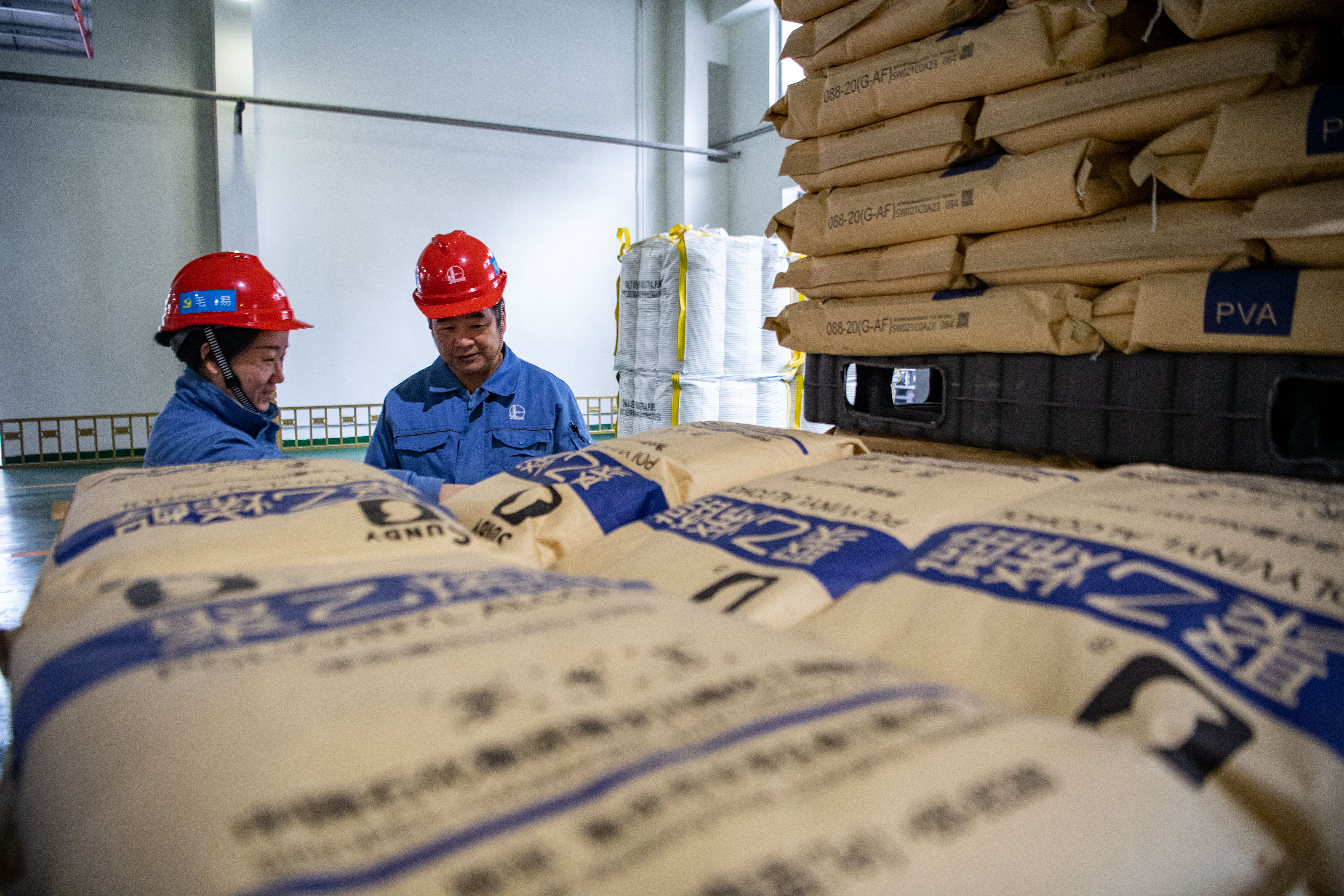 新华社照片,重庆,2022年2月20日 我国精细化工产品通过“中欧班列”出口欧洲 2月12日,工作人员在抽检聚乙烯醇(PVA)产品打包情况。 2月20日,装载1100余吨聚乙烯醇(PVA)等精细化工产品的火车专列通过中欧班列(渝新欧),从重庆果园港启程发往德国杜伊斯堡。本次列车共发运49个集装箱,全部装载中国石化川维化工公司生产的聚乙烯醇等精细化工产品。 新华社记者 唐奕 摄