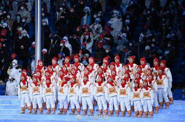 北京冬奥会闭幕式上,开幕式合唱团孩子们再次亮相,孩子们穿上与开幕式表演时同款不同色的新衣服,衣服上装饰以中国传统的“连年有余”的剪纸图案,再次唱响奥林匹克之歌。