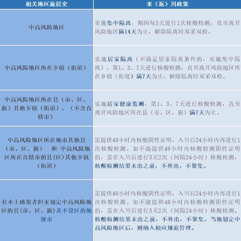 来(返)川人员要主动参与疫情防控工作,积极履行防控义务,做好个人防护,配合落实疫情防控措施。