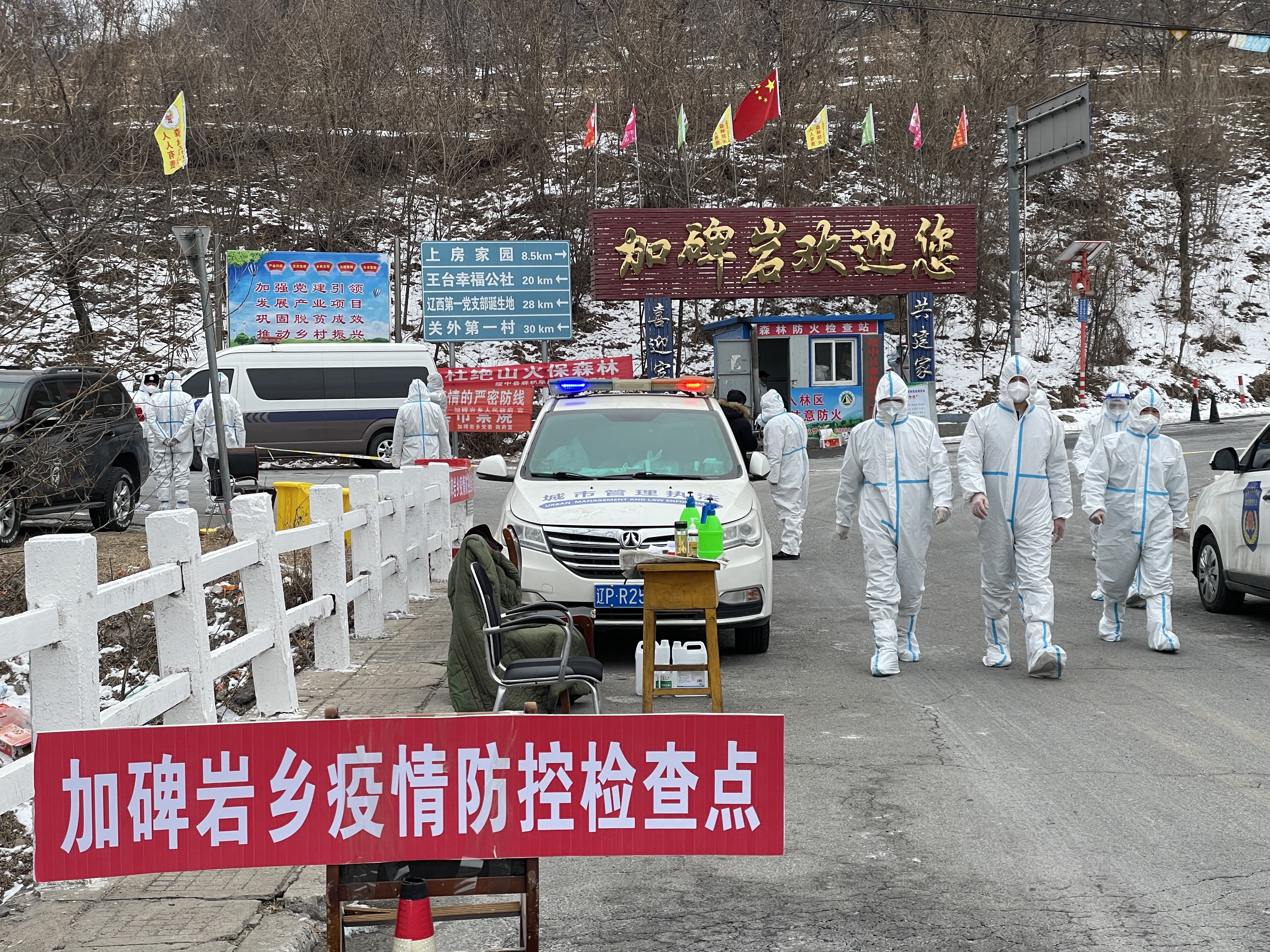 绥中县加碑岩乡疫情防控检查点。(新华社记者李昂 摄)