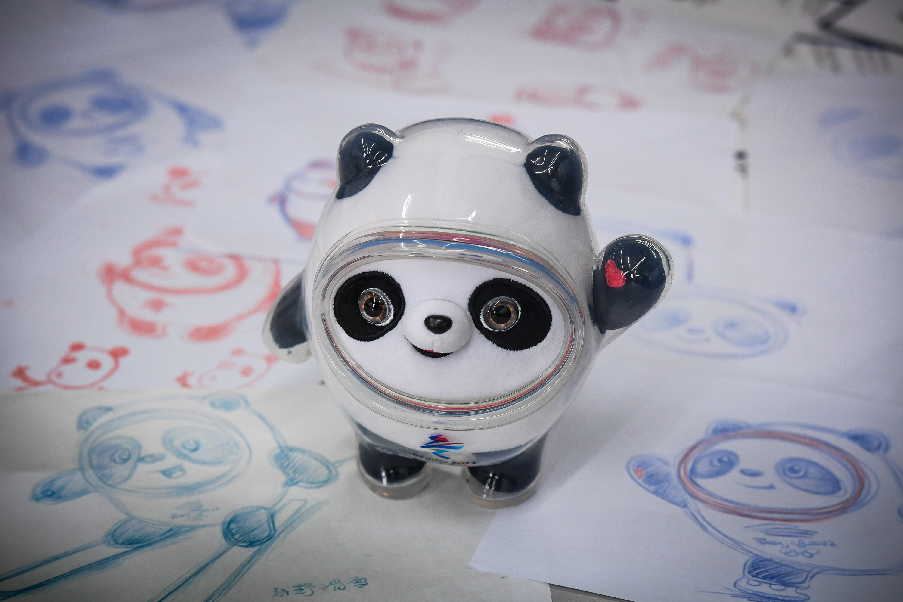2月9日,这是放置在设计手稿草图上的北京2022年冬奥会吉祥物冰墩墩。新华社记者刘大伟摄