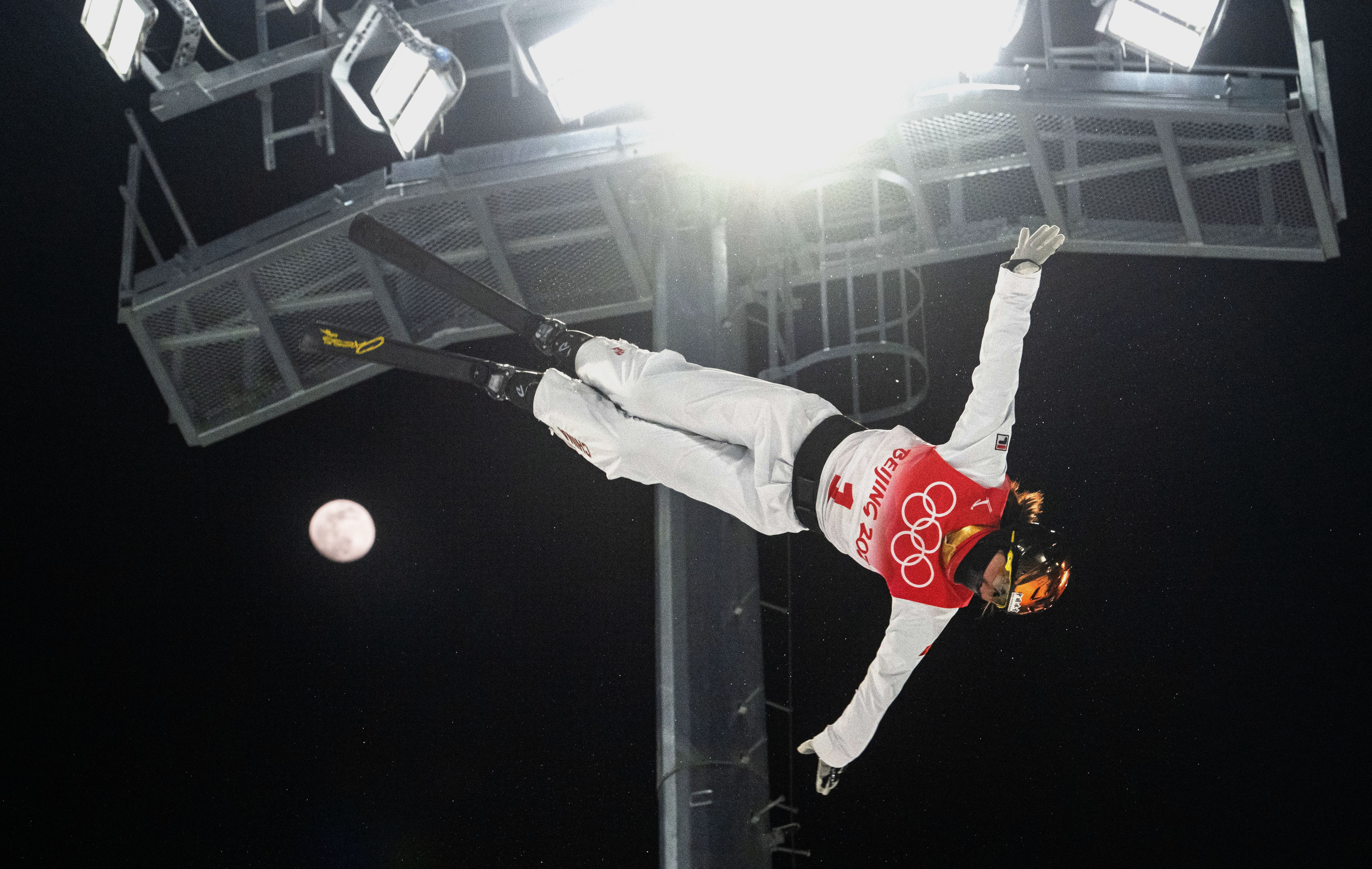 2月14日,北京冬奥会自由式滑雪女子空中技巧决赛,中国队选手徐梦桃在比赛中。新华社记者肖艺九摄