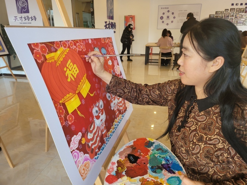 “会画画了,日子美了,钱包鼓了,生活更好了!” 2020年10月,“天才妈妈”——农民画手工艺梦想工坊正式落户东丰县,在中国妇女发展基金会大力支持和东丰县妇联的积极带动下,一年多来,工坊已有70多名“天才妈妈”加入其中,共组织农民画创作培训班12期,交付完成首批农民画作品订单1000幅。真正实现了为东丰县低收入从事农民画创作的妈妈们提供一个工作就业、学习交流的“家”。