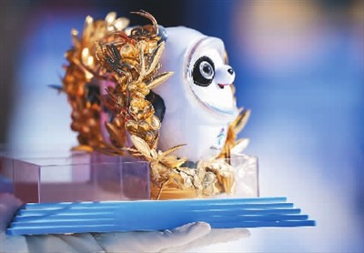二月十六日,在北京冬奥会颁发纪念品仪式上拍摄的冰墩墩。 新华社记者 薛玉斌摄 |