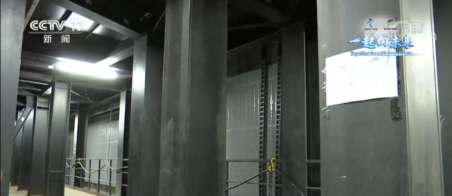 北京长征天民高科技有限公司副总经理 曹岭:我们目前所在的位置是从地平往下地仓的-8米,我右手边是冰立方的装置,也就是开幕式呈现出来的冰雪五环的那个冰立方装置。在开幕式以后,我们将冰雪五环移出,然后将星星五环放入,利用了冰立方储存空间来呈现整个星星五环。为了抢工期,基本上也是24小时作业,最终提前两天完成。相当于(缩短)前期的准备工作时间,进入排练,最终才完美地呈现出了星星五环。