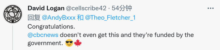还有人提到加拿大广播公司(CBC),“祝贺你。CBC甚至都没获得这个,他们是由政府资助的。”↓
