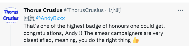 不少人同样为他感到高兴,“这是一个人能得到的最高荣誉标记之一,恭喜你,Andy!!那些诽谤者非常不满,这意思是,你做了正确的事(竖大拇指)”。↓