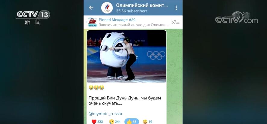俄罗斯奥委会的社交账号则发布了与冰墩墩告别的图片,俄罗斯网友纷纷留言道,“不舍冰墩墩”,“这是奥运会最好的吉祥物”,“中国人充满了创意”,“过去的两周是最近两年最好的日子”。