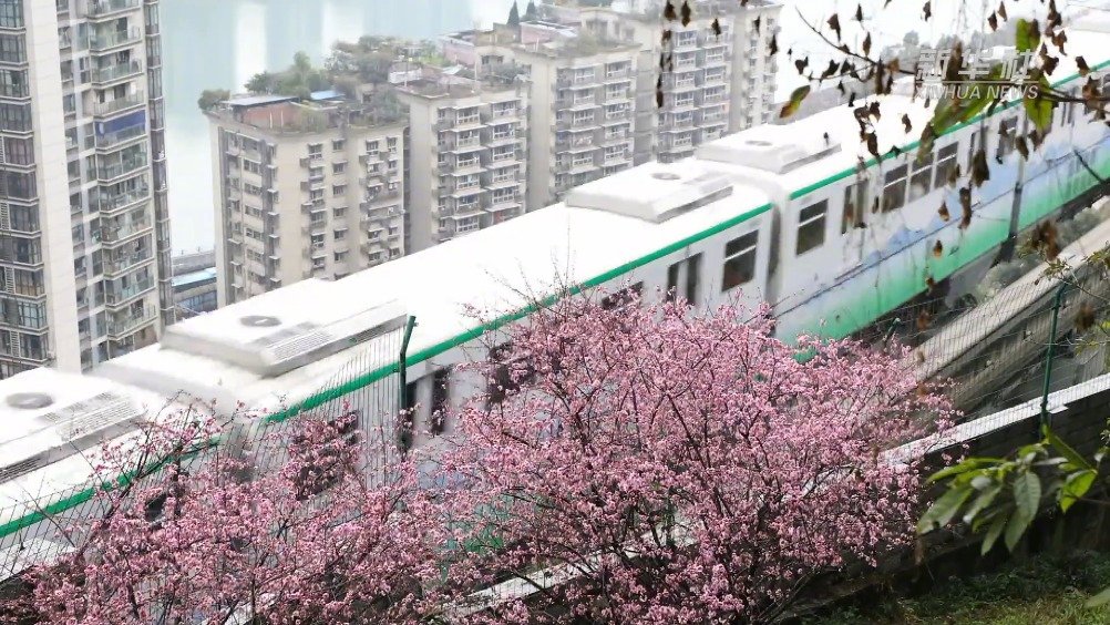 【#重庆穿楼轻轨宛若开往春天的列车#】李子坝站,因为轻轨穿楼而成为重庆的网红打卡点。立春之后,随着气温不断回升,轨道二号线李子坝站附近红梅花陆续开放,乘坐轻轨穿梭其间宛若坐上开往春天的列车,引来不少寻找春天足迹的人。戳视频,看#重庆穿楼轻轨附近的红梅花开了#↓↓↓ 新华社的微博视频
