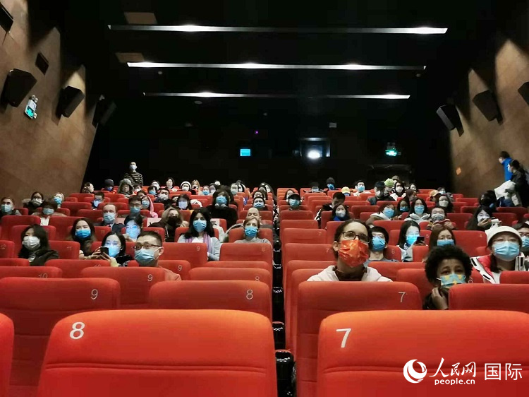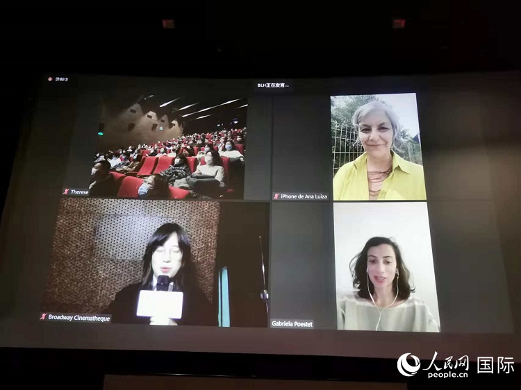 导演安娜·路易莎·阿兹维多(右上)与现场观众进行线上交流。人民网记者 符园园摄