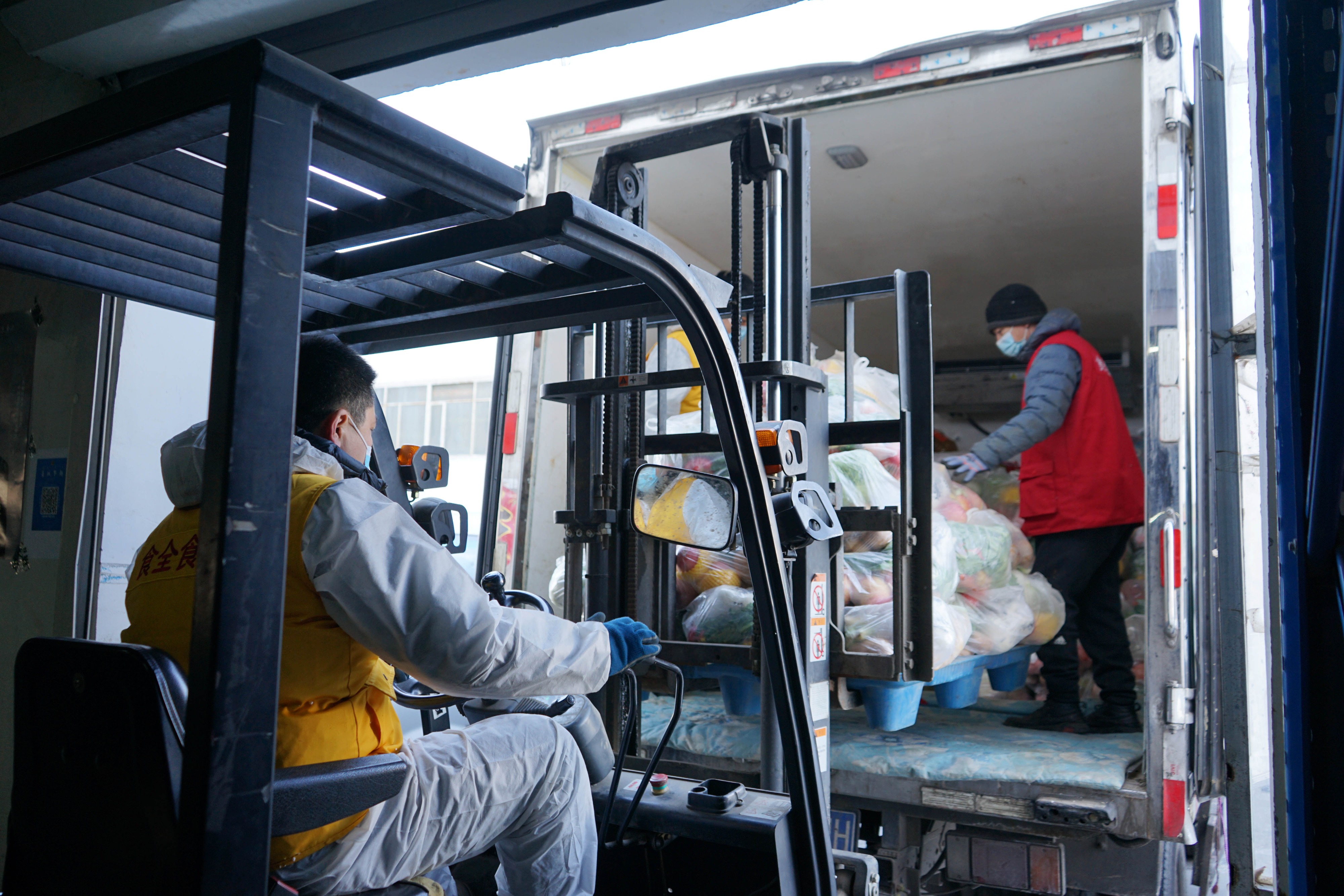 内蒙古食全食美股份有限公司副总经理苏秀清介绍,本轮疫情发生以来,公司累计投入100多名员工参与物资保障工作,并从山东、河北等地调运了蔬菜、水果保障物资供应。