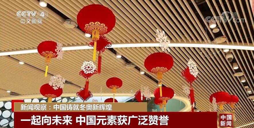 北京冬奥会上,中国传统文化与奥林匹克文化相互交融,开启了全世界“一起向未来”的新篇章。 北京冬奥会很多场馆设计体现了中国文化特色,比如“冰丝带”“雪飞天”“雪如意”等场馆包含中国元素;“冰墩墩”被誉为冬奥会顶流吉祥物,在全世界刮起旋风,开、闭幕式更是得到国际社会的一片赞誉。
