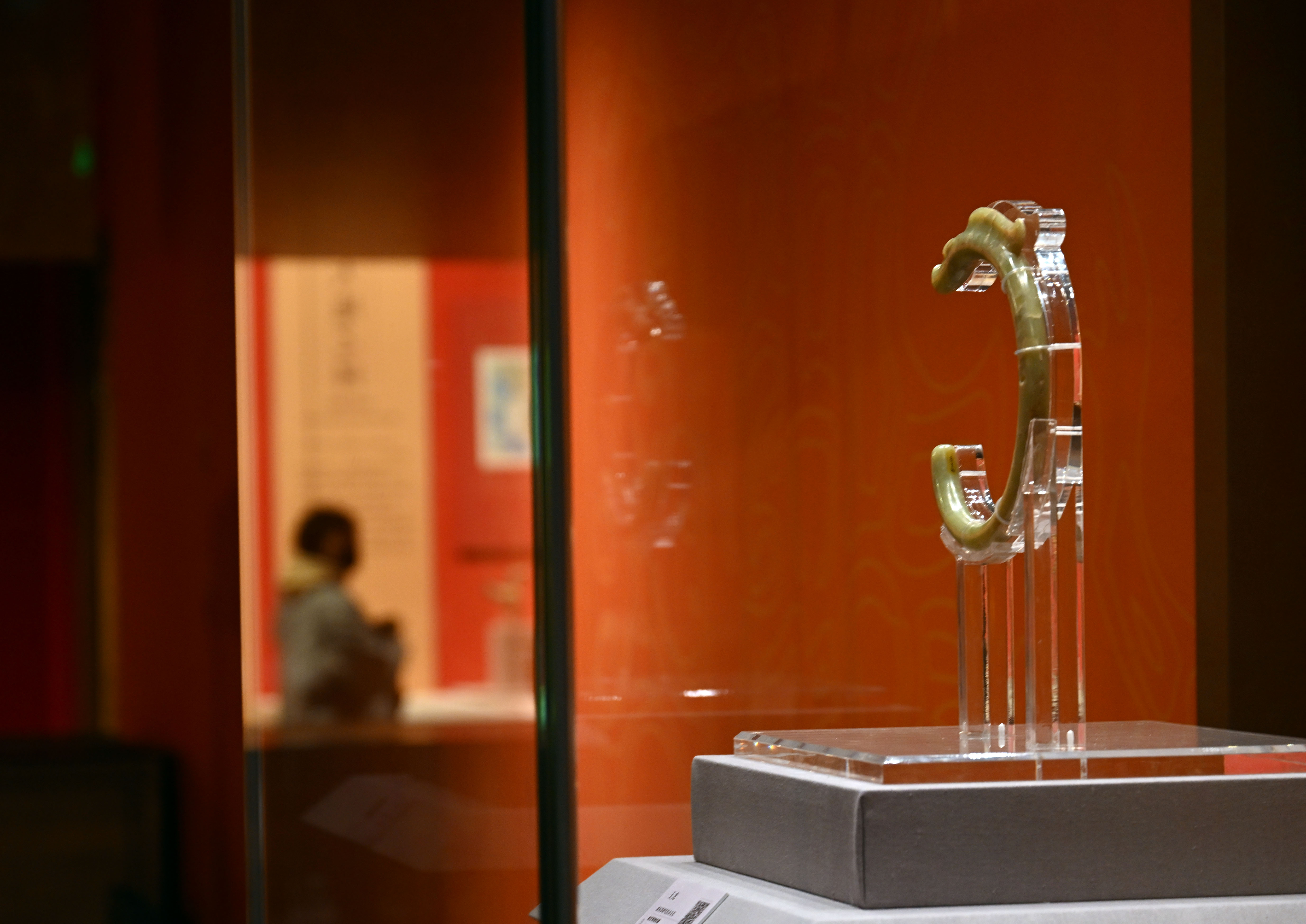 新华社照片,北京,2022年2月21日 砥砺前行 共创未来——2022新开局看“奋进中国”新图景 1月25日,由国家文物局指导的“何以中国”展在北京故宫文渊阁开幕。这是展出的玉龙(1月25日摄)。 (配本社同题文字稿) 新华社记者 金良快 摄