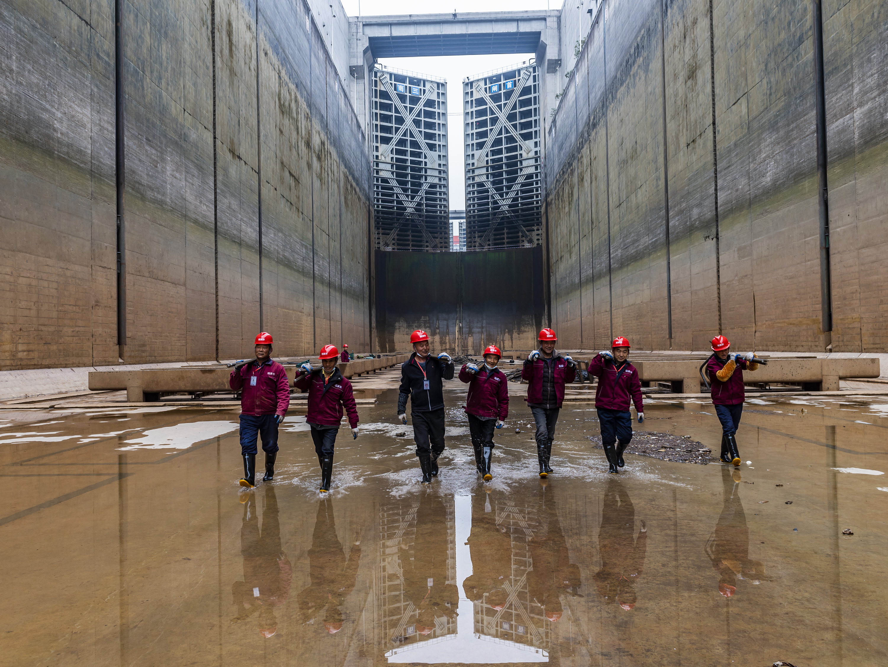 新华社照片,宜昌(湖北),2022年2月21日 工期30天,三峡南线船闸停航检修 2月21日,工人在三峡五级船闸南线闸室内转运钢筋。 从2月21日8时起,三峡南线船闸开始停航实施计划性检修施工,工期30天。南线船闸停航期间,北线船闸继续运行。 新华社发(郑家裕 摄)