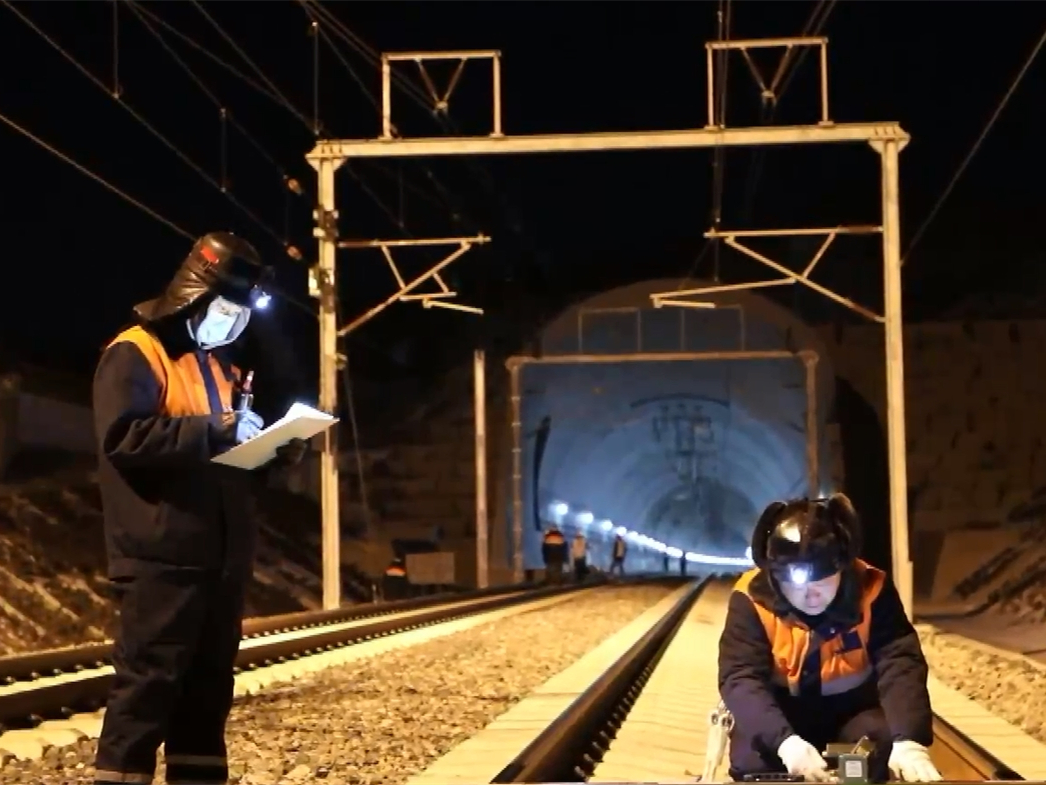 登上梯车、攀上立柱,紧固螺栓、安装驱鸟设施、利用激光仪进行测量……对于这些工人来说,他们检查技术参数甚至比裁判检视冰场雪场上的动作参数更加精细严格。黑夜里,“叮叮哐哐”声从铁轨上方传来,仿佛一群“蜘蛛人”在“电路网”上演奏着交响曲。