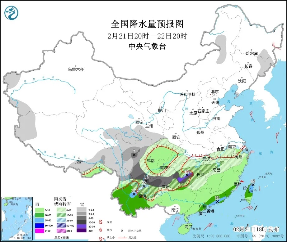 今日天气:内蒙古东部、青海东部和南部、甘肃南部等地有小到中雪或雨夹雪,其中,西藏东南部、四川西部和南部等地部分地区有大雪或暴雪。云南中南部、江南南部、华南、海南岛、台湾岛等地有小到中雨,局地大雨。