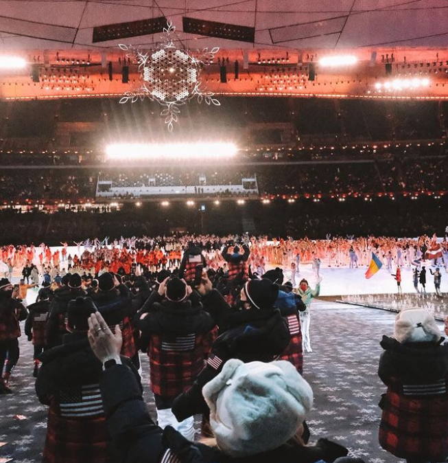 除了一段长文,布隆克也上传了自己和美国代表团成员们在闭幕式上的多张照片。其中一张照片中,他站在体育场内,摆出V字手势。另一张照片中的布隆克开心地和志愿者们合影留念。此外还有多张图片记录下了闭幕式上美轮美奂的一幕幕。