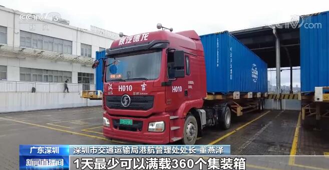 深圳市交通运输局港航管理处处长 董燕泽:3个集装箱港区计划每天开3条集装箱班轮航线,总体1天最少可以满载360个集装箱,来分流陆路的跨境运输压力。航线被广大客户认可之后,运量还可以继续加大,我们港口是有能力来组织运力,来保证深港的跨境运输。