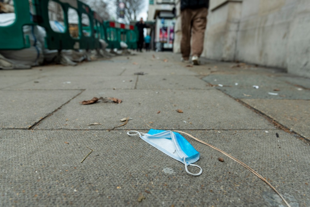 2月21日,在英国伦敦,一个口罩被丢弃在街上。(新华社发,史蒂芬·程摄)