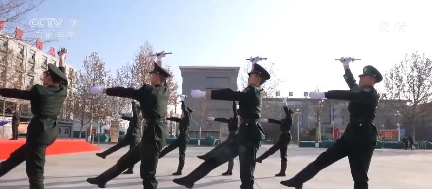 训练中,像这种角度、距离的微调每天都在变化,差一厘米都不行。每调整一次,战士们就要重新定位训练。和以往升旗任务相比,这次最大的变化是挥旗的动作,因为开幕式现场升旗台位置的朝向问题,改变了挥旗的方向。