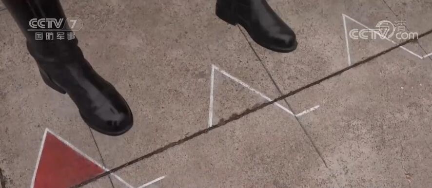 战士们正在组装的架子叫踢腿摆臂架,一高一低两条白色标线专门用来训练踢腿、摆臂两个动作,卷尺测量每个动作的角度和距离,军容镜时刻检查动作是否标准,三角标线用来规范立定动作时两脚间的夹角。训练场上随处可见的测量工具,确保每一个动作都有标准的数据。