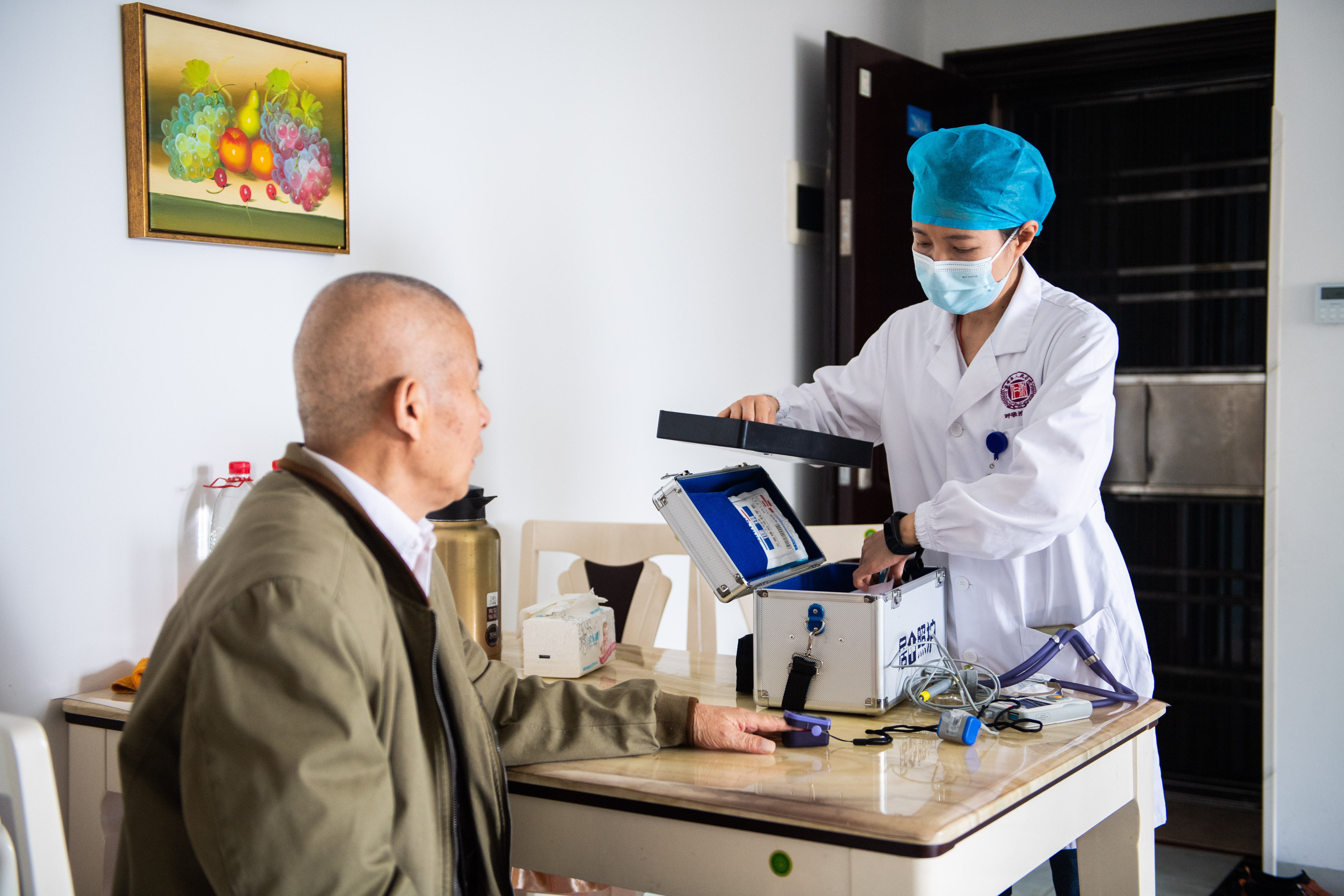 2021年5月8日,在“互联网+护理服务”网约护士项目中,湖南省人民医院呼吸治疗专科的护士文辉应约来到患者家中服务。(新华社记者陈思汗 摄)