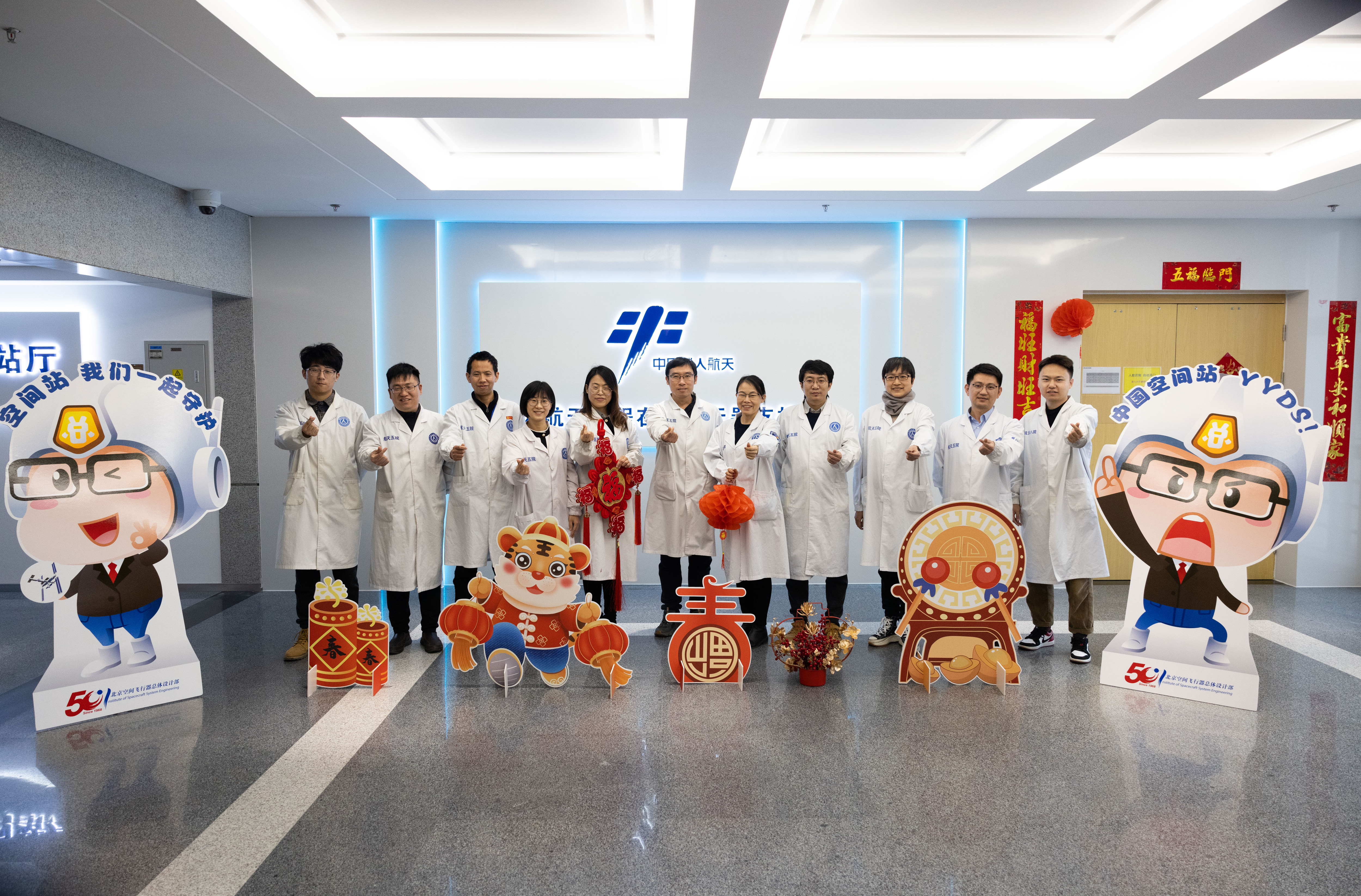 新华社照片,北京,2022年2月22日 一起向未来——2022年新开局看“活力中国”新气象 1月30日,在航天科技集团五院在轨航天器支持中心数字空间站外,空间站任务飞控试验队科研人员合影留念。 (配本社同题文字稿) 新华社记者 金立旺 摄
