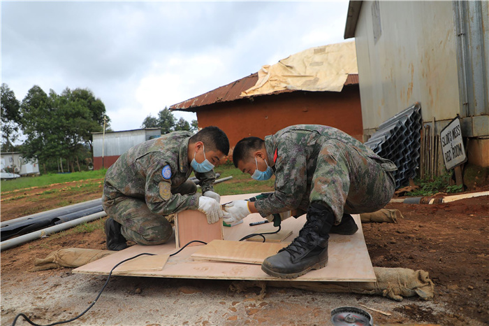 | 瓦伦古施工点执行营区改造任务 。中国第25批赴刚果(金)维和工兵分队供图 |