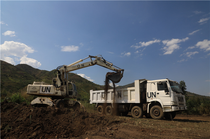 | 乌维拉施工点执行场地平整任务。中国第25批赴刚果(金)维和工兵分队供图 |