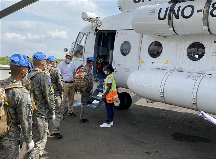 人民网约翰内斯堡2月22日电 (记者闫韫明)当地时间2月21日,中国第25批赴刚果(金)维和工兵分队的11名官兵搭乘飞机安全抵达沙本达施工点执行维和部队营区修缮任务。至此,该分队安排在布卡武、瓦伦古、乌维拉、米尼布维、沙本达5个施工点的人员装备全部部署完毕,开始展开新一轮施工任务。