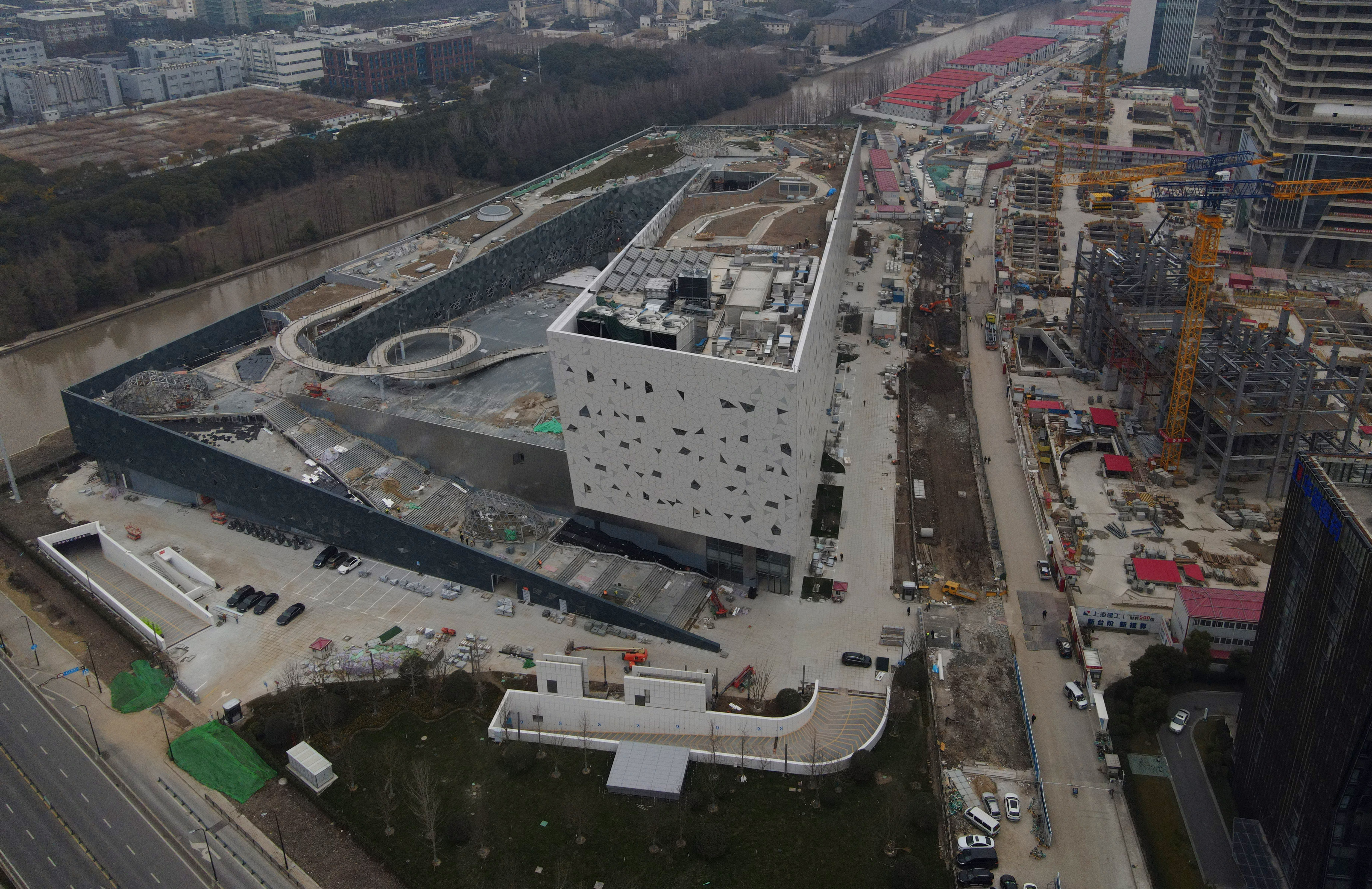 新华社照片,上海,2022年2月22日 上海:飞阅建设中的张江科学会堂 空中俯瞰建设中的张江科学会堂(2月22日摄,无人机照片)。 坐落在上海川杨河畔的张江科学会堂总建筑面积11.5 万平方米,建筑高度50米,由6000平方米主会场、4000平方米多功能厅以及17个规模不等的会议展示空间模块组成。其北望“张江药谷”,东接正在建设的“张江科学之门”,南近浦东国际人才港,西邻张江人工智能岛,地理位置优越,投入使用后将成为张江科学城的“科创新主场”。 新华社记者 方喆 摄