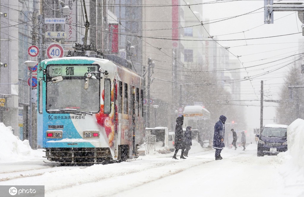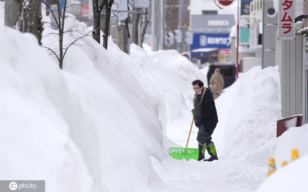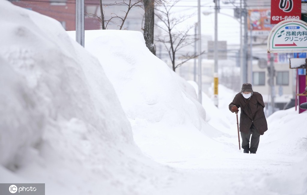 日本部分地区强降雪致交通瘫痪 路边积雪达2米