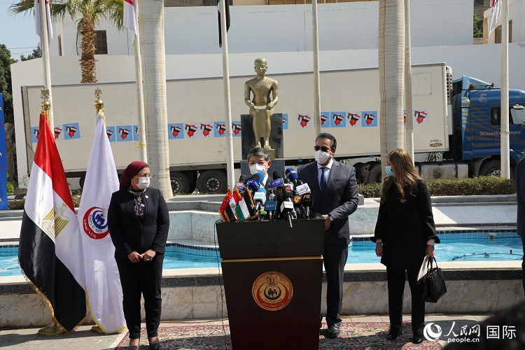 人民网开罗2月21日电 (记者周輖)中国与埃及联合向加沙地带援助新冠疫苗启运仪式20日在埃及生物制品与疫苗公司总部举行,中国驻埃及大使廖力强、埃及高教科研部长兼代理卫生部长加法尔、巴勒斯坦驻埃及大使馆代表巴尔古提等出席。