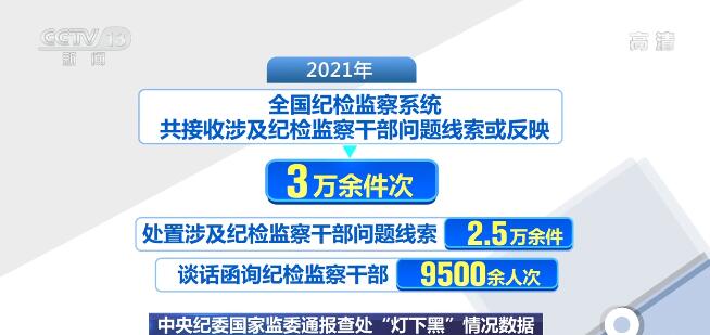 央视网消息:今天(2月23日),中央纪委国家监委通报2021年对纪检监察干部监督检查审查调查情况,一年来,各级纪检监察机关持续保持高压态势,查处“灯下黑”力度不减。