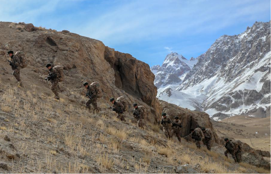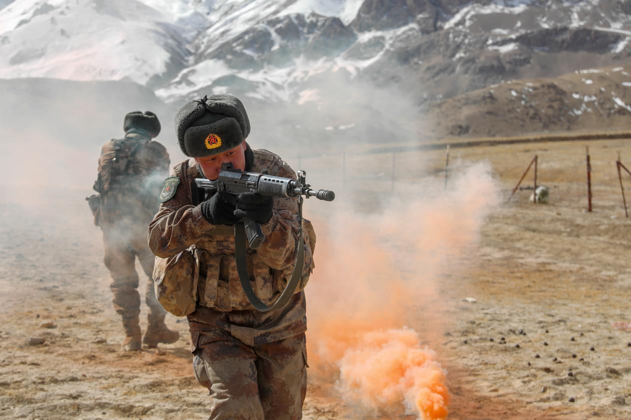 近日,新疆军区某边防团卡拉其古边防连在海拔4000多米的帕米尔高原组织多课目强化训练,锤炼战斗技能,磨砺意志品质。(姬文志、刘敬威、杜威摄影报道)