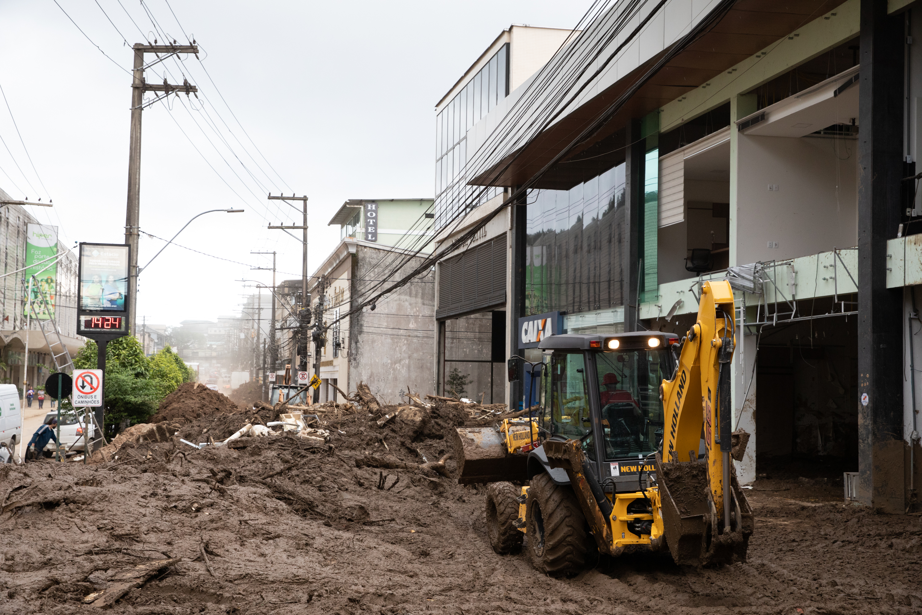 新华社照片,彼得罗波利斯(巴西),2022年2月23日 (国际)(2)巴西里约州暴雨死亡人数升至193人 2月22日,在巴西里约热内卢州城市彼得罗波利斯,工程机械进行清淤作业。 2月15日,彼得罗波利斯突降暴雨,造成山体滑坡、洪水塞道,到22日已造成至少193人死亡、69人失踪。灾害发生后,巴西各地发起捐赠活动,捐赠物资陆续到达彼得罗波利斯。 新华社记者 王天聪 摄